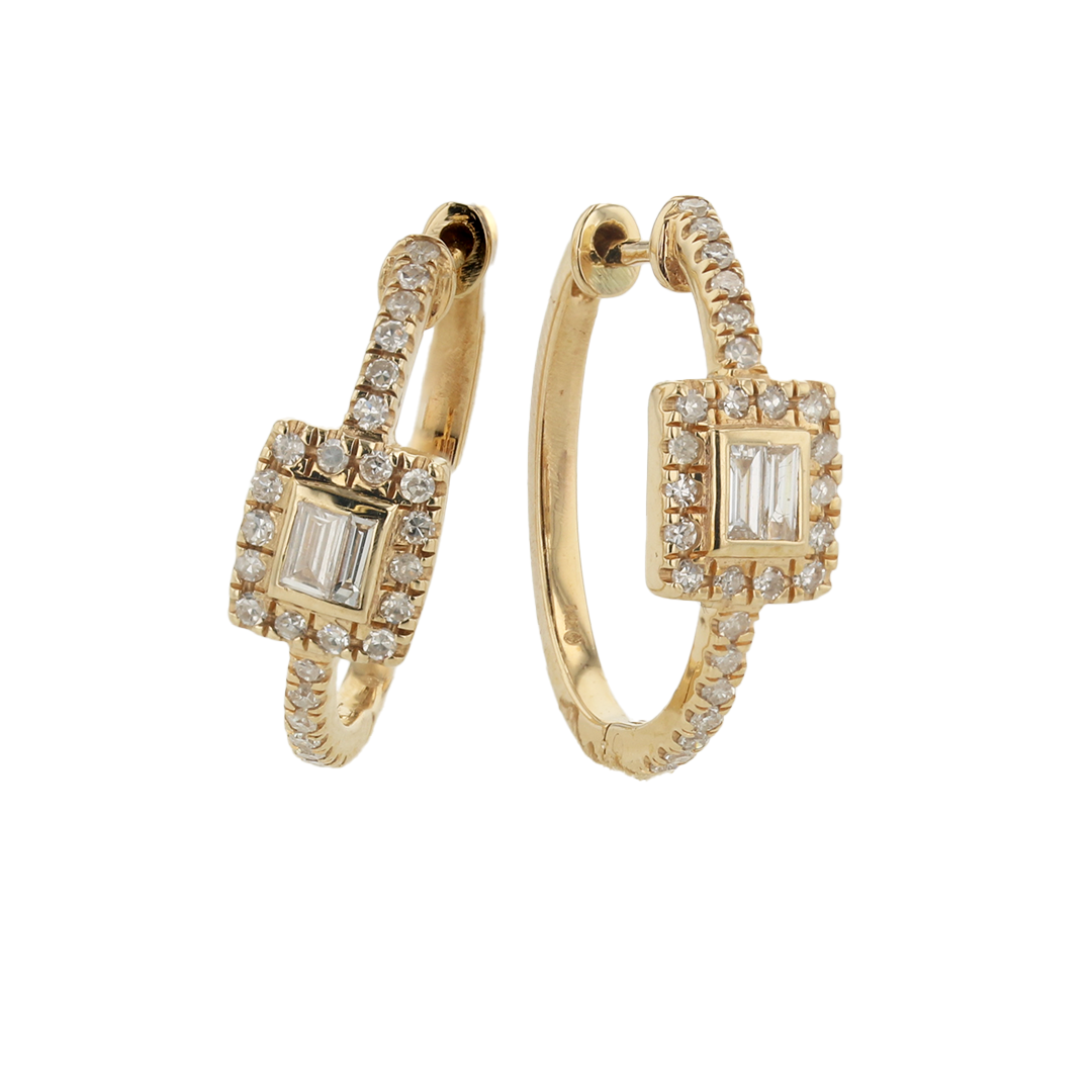 Introducing "The Olive Huggies Earrings." Made of 14KYG, these elegant huggies earrings feature 0.34CTTW of round brilliant cut diamonds and baguette cut diamonds. These stunning earrings are the perfect accessory for any occasion!