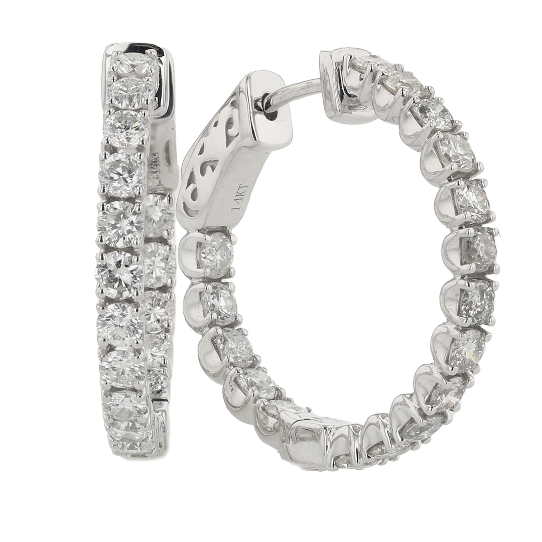 "The Diva Diamond Hoop Earrings" 2.95CTTW 14KWG DIA IN/OUT HOOPS