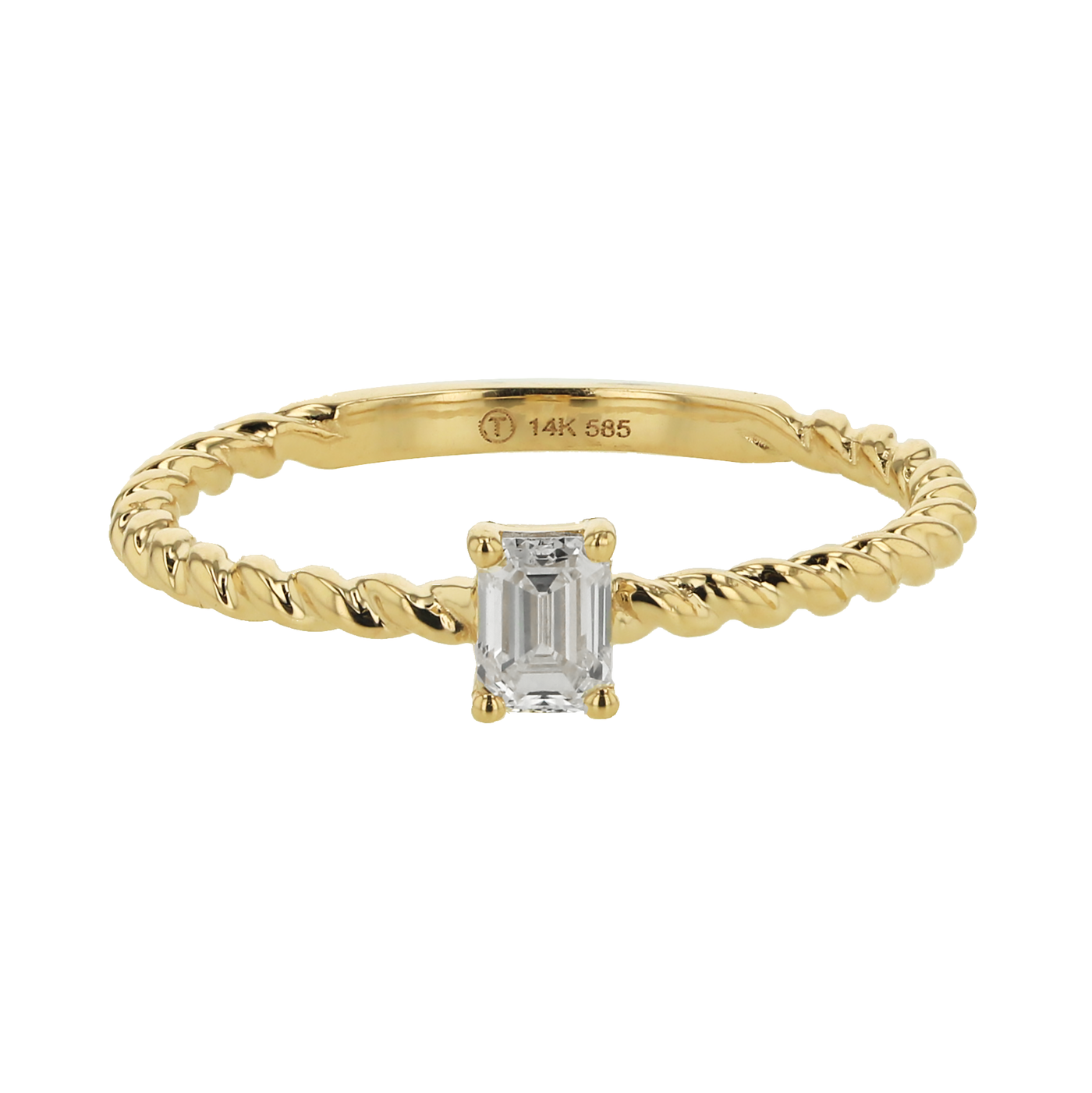 0.26 CTTW Emerald Cut Rope Ring in 14K Yellow Gold