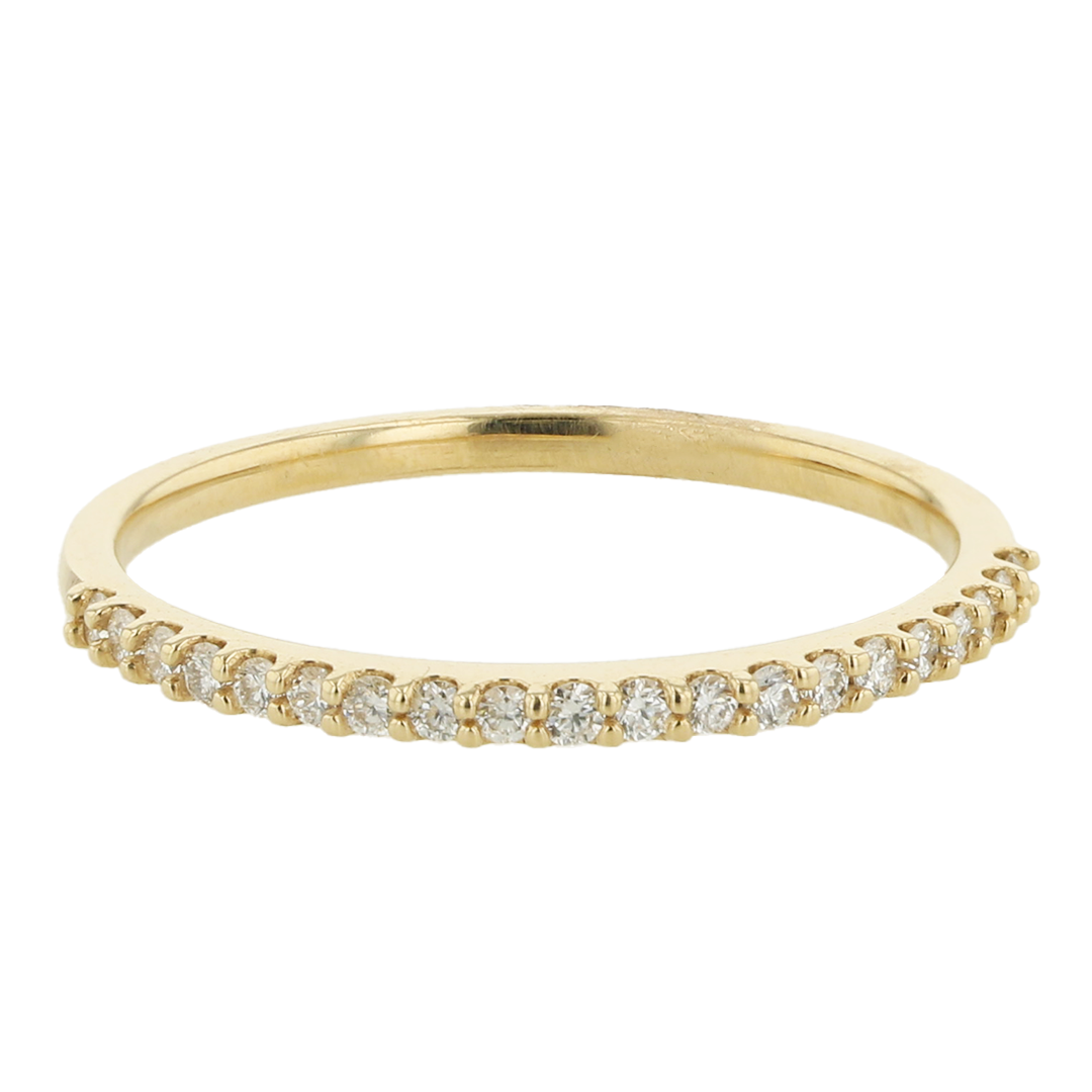 Introducing the Mini Lily Diamond Band. Crafted with elegance in mind, this 0.25CTTW 14KYG diamond band radiates beauty. The 14K yellow gold complements the round brilliant cut diamonds, creating a stunning contrast. Perfect for any special occasion.