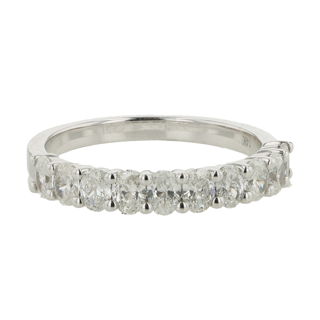 Introducing "The Tabitha Diamond Band!" This captivating ring features an arrangement of 1.05CTTW oval cut diamonds. Crafted in 14-karat white gold, its timeless design beautifully complements any style. Elevate your look with this exquisite piece, perfect for any special occasion.