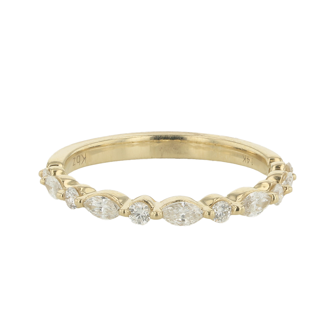 Introducing "The Taylor Diamond Band," a masterpiece that radiates elegance. Crafted with 0.50 carats total weight of round and marquise cut diamonds set in 14K yellow gold, this band is timeless beauty. Its delicate design and brilliant sparkle make it the perfect accessory for any occasion.