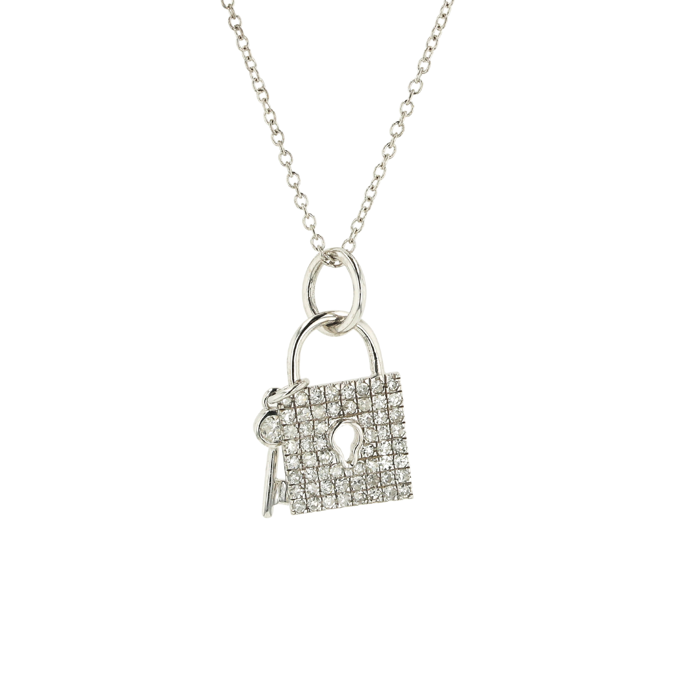 Unlock a world of timeless elegance with our "Lock and Key" Diamond Necklace. This enchanting piece features 0.30 Carat Total Weight of diamonds, set in 14K white gold. The diamonds' sparkle paired with the classic lock and key design make it a charming and romantic choice. A symbol of love, this necklace is an ideal gift for someone dear or a luxurious treat for oneself.