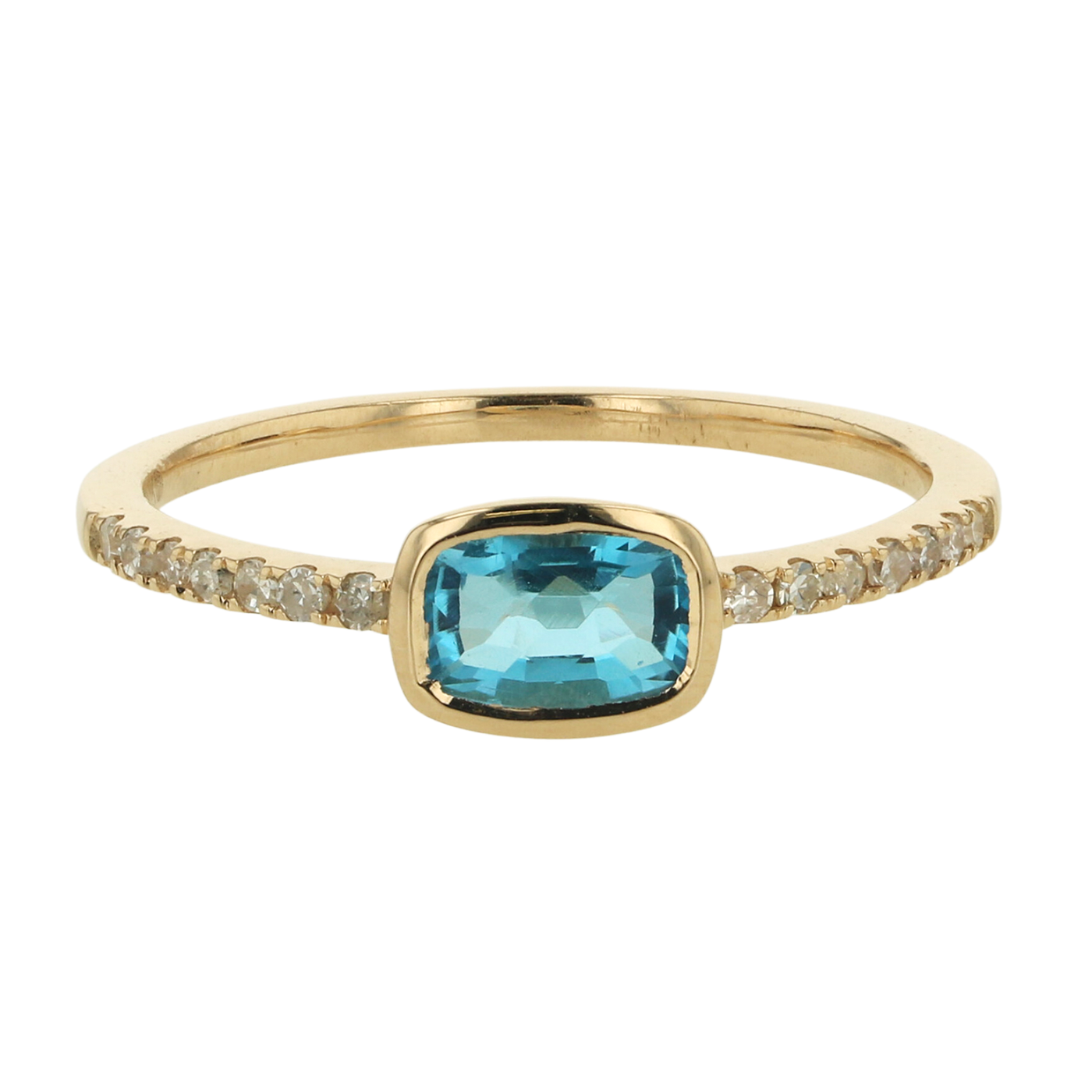 "Opulent Topaz" 0.70CT Cushion Blue Topaz and 0.10 CTW Diamond Ring