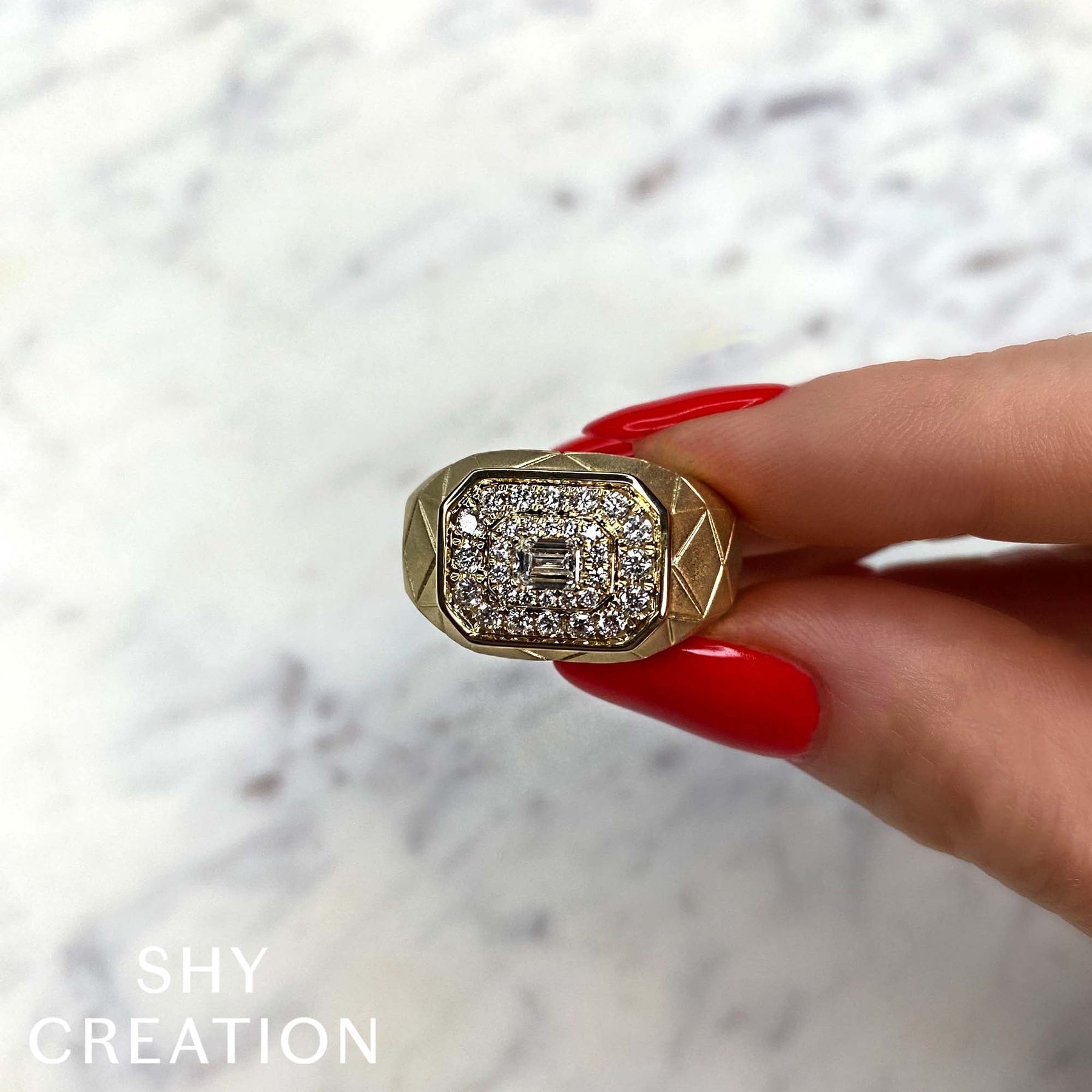 0.88CT DIAMOND EMERALD SIGNET MEN'S RING