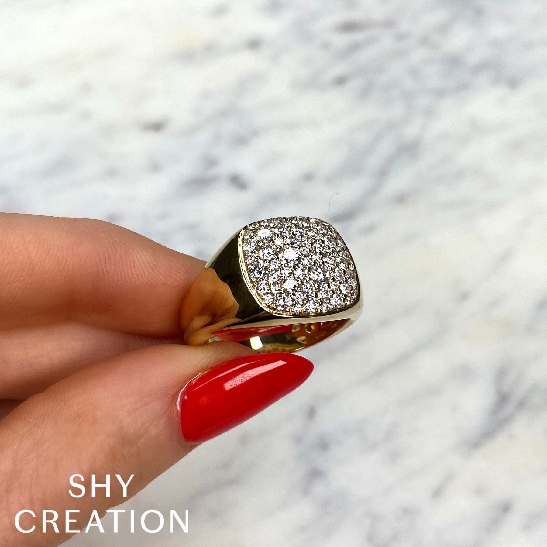 1.38CT DIAMOND PAVE SIGNET MEN'S RING