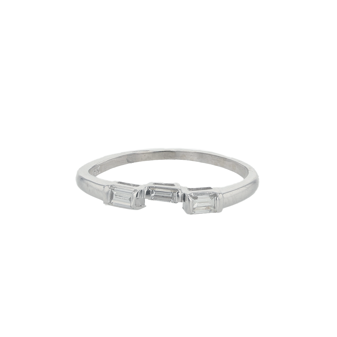 Discover the captivating beauty of the "Evangeline Diamond Band!" Created in 14KWG, this piece showcases a total diamond weight of 0.15CTTW. With its delicate design and three baguette diamonds, this band exudes understated elegance, making it a cherished addition to any jewelry collection.