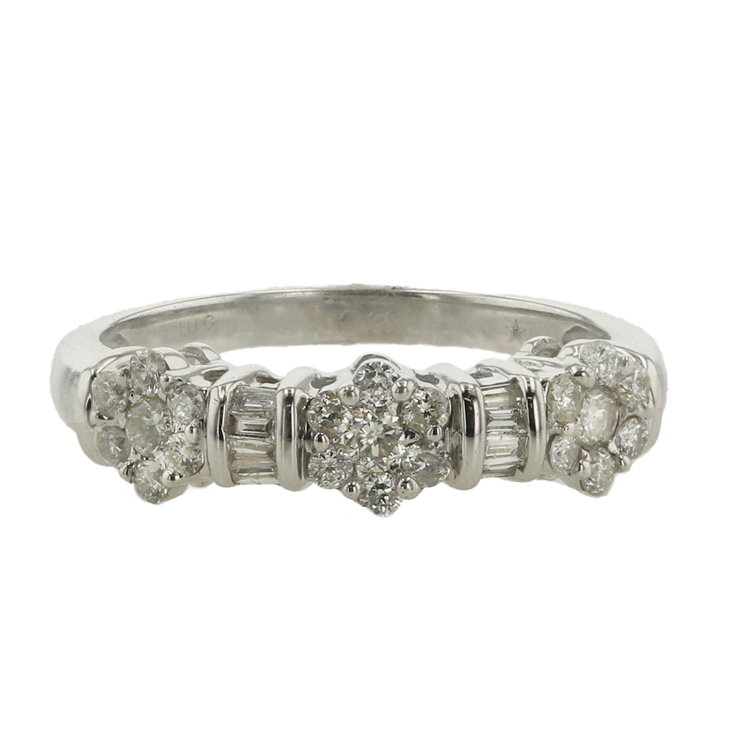 Introducing "The Poppy Diamond Ring," a piece of artistry and elegance. Crafted in stunning 14K white gold, this mesmerizing ring features 0.38 carat total weight of round and baguette cut diamonds, exuding brilliance from every angle. Its delicate design is reminiscent of a blooming poppy, symbolizing beauty and grace.
