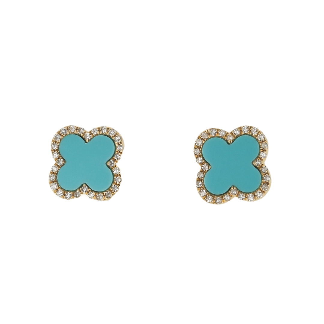 "The Sydney Earrings" 0.11CTTW DIA 0.48CTTW TURQ 14KYG CLOVER